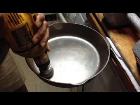 Cast Iron Skillet Cleaning Brush }}- In this video, I demonstrate how to safely wire brush a cast iron skillet. This skillet has been stripped to the bare iron and soaked in vinegar and water to remove ...